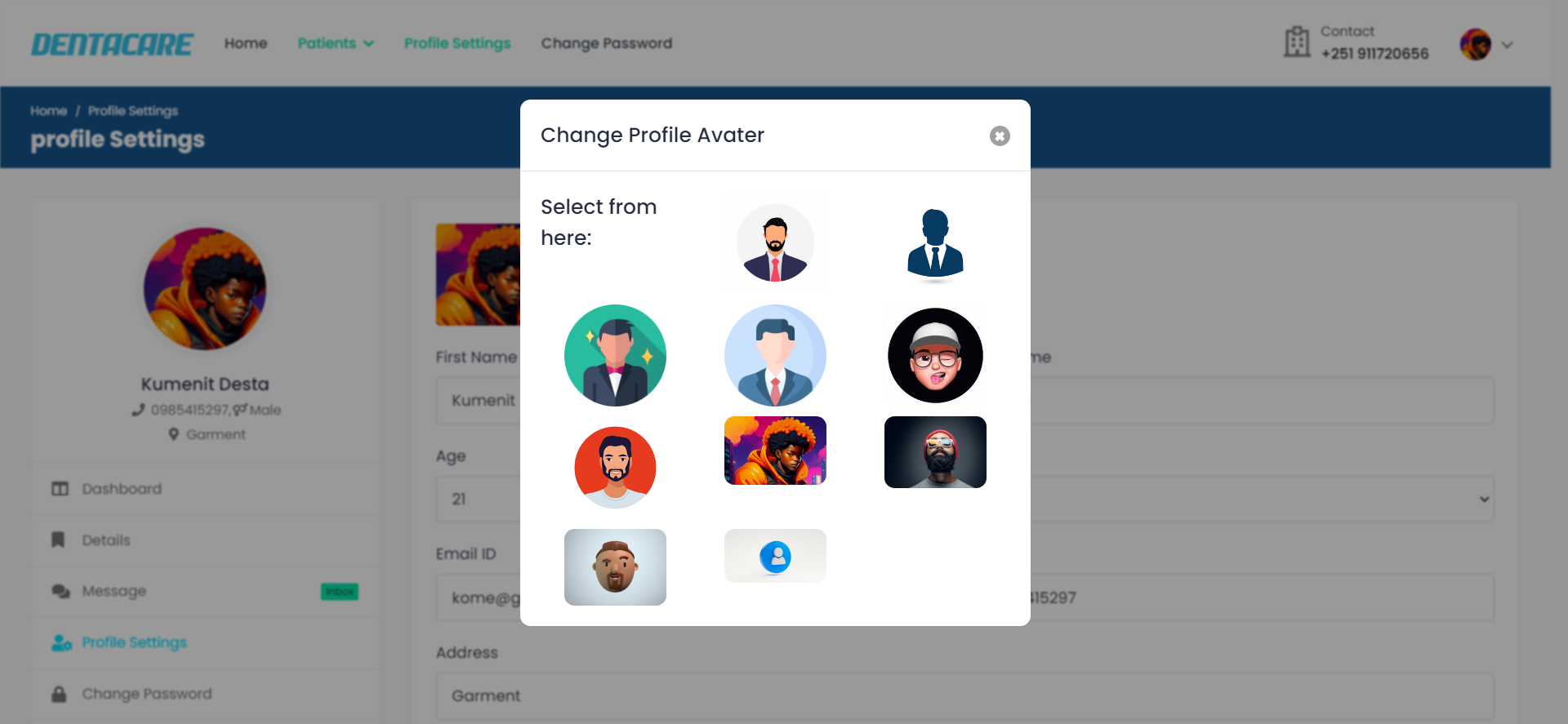 Dentacare allows patients to personalize their profiles by changing avatars and customizing profile settings, enhancing user experience and engagement.
