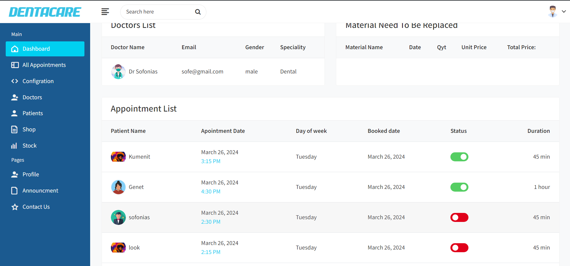 Dentacare provides doctors with an efficient dashboard for managing their practice, appointments, and patient interactions, enabling streamlined operations and enhanced patient care.