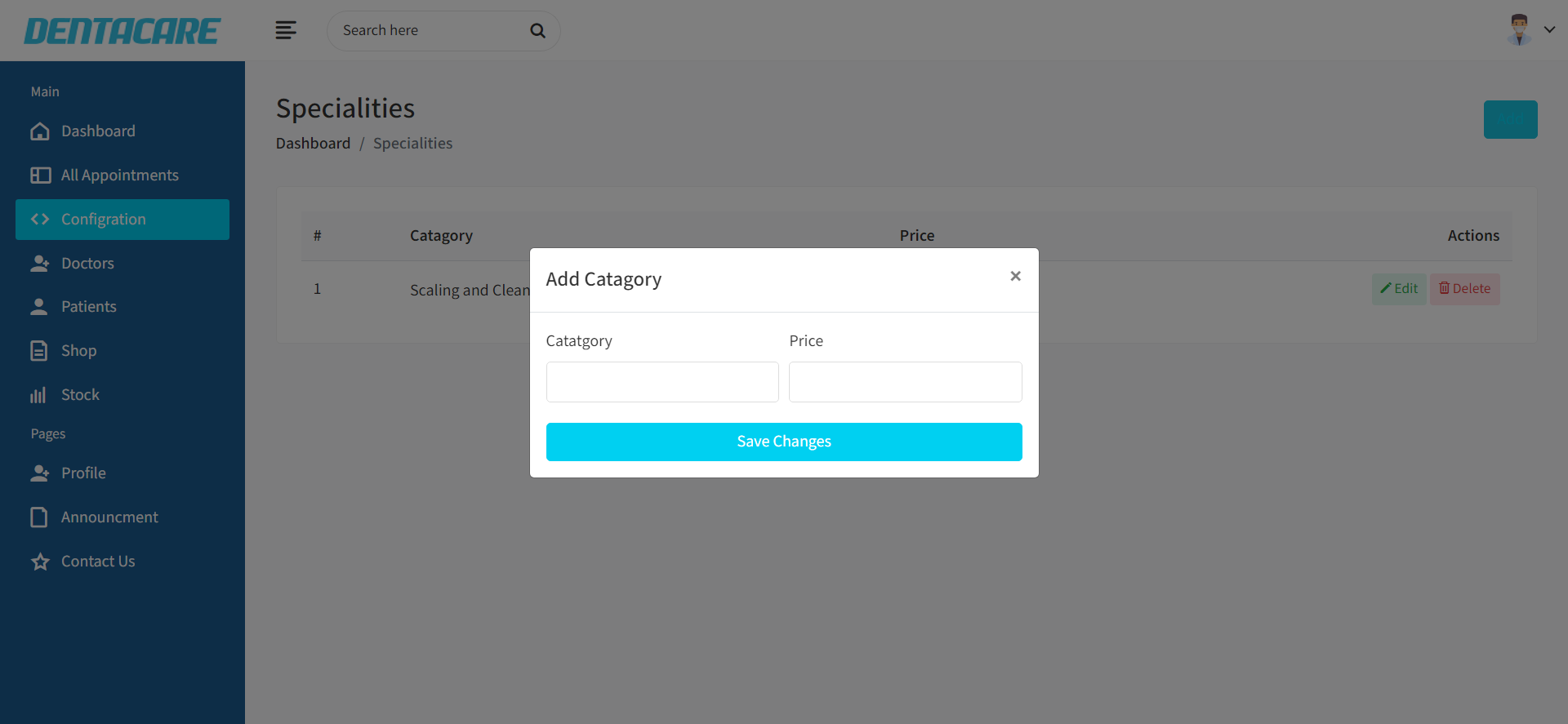Dentacare offers flexible category and configuration options, allowing administrators to customize clinic services and settings to meet the unique needs of their practice and patients.t