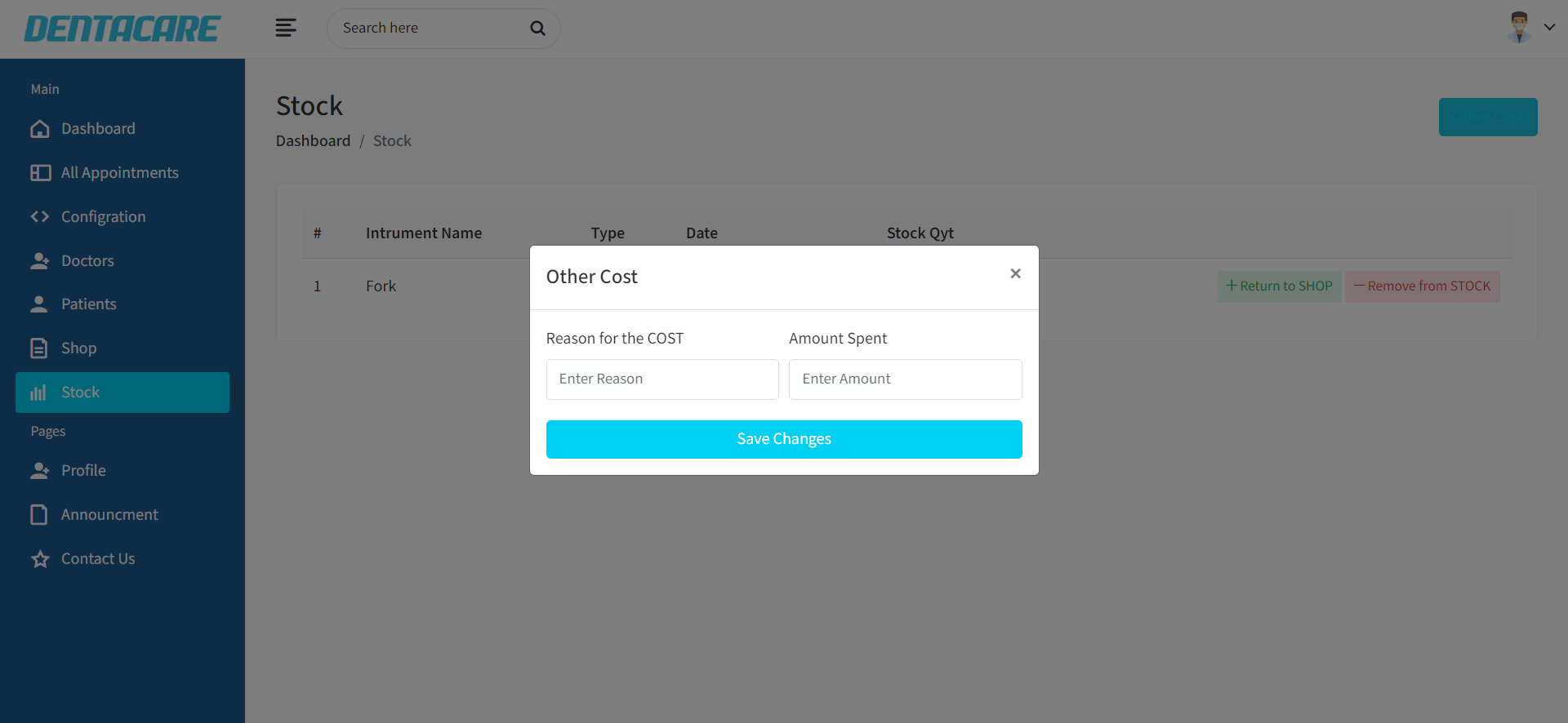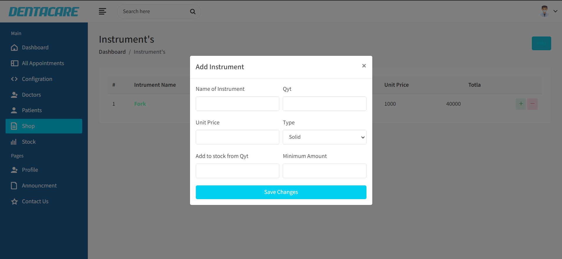 Dentacare facilitates efficient instrument management, enabling administrators to track and manage clinic instruments seamlessly for optimized clinic operations.