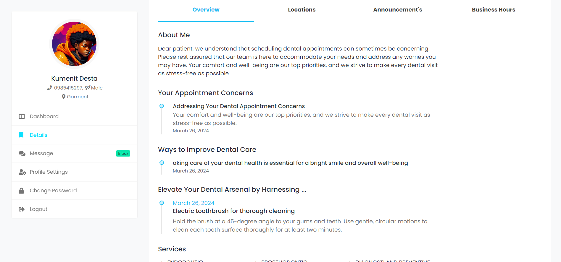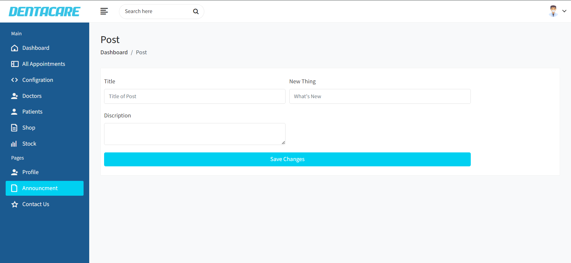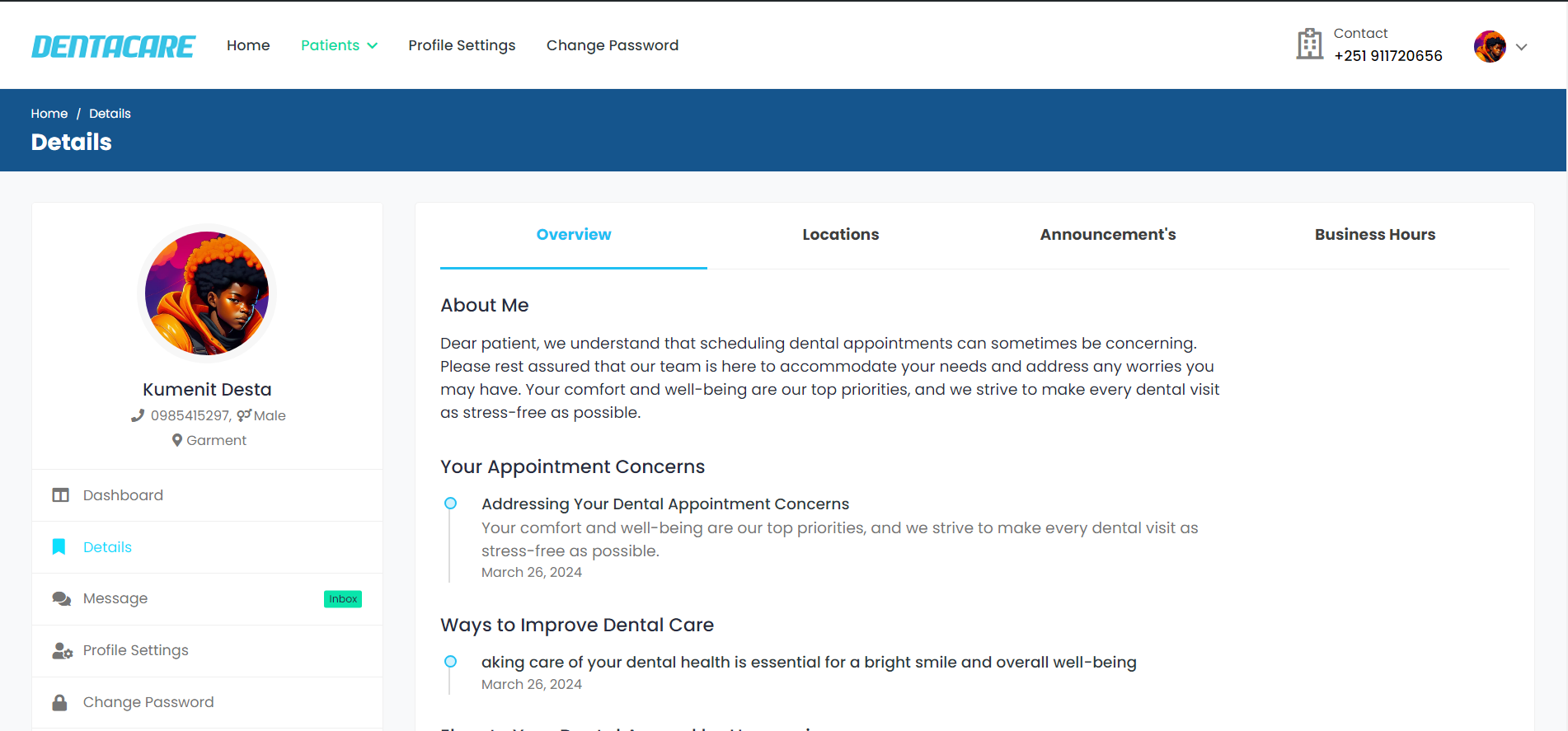 Dentacare facilitates clinic announcements, enabling administrators to communicate important updates and information to patients and staff effectively.