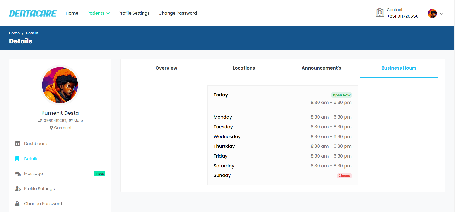 Dentacare offers patients the convenience of checking clinic opening and closing hours, ensuring they can schedule appointments at times that suit their schedules.