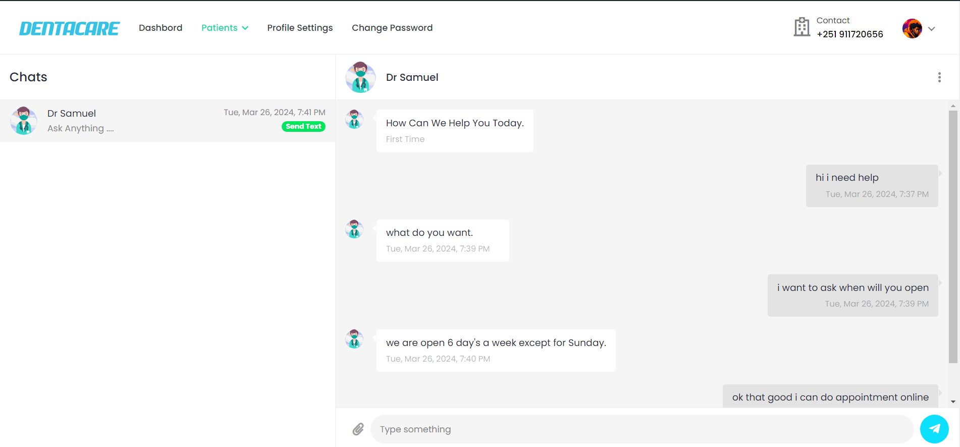 Dentacare offers patients a direct communication channel to reach out with inquiries, feedback, or concerns, ensuring prompt and personalized assistance from clinic staff.
